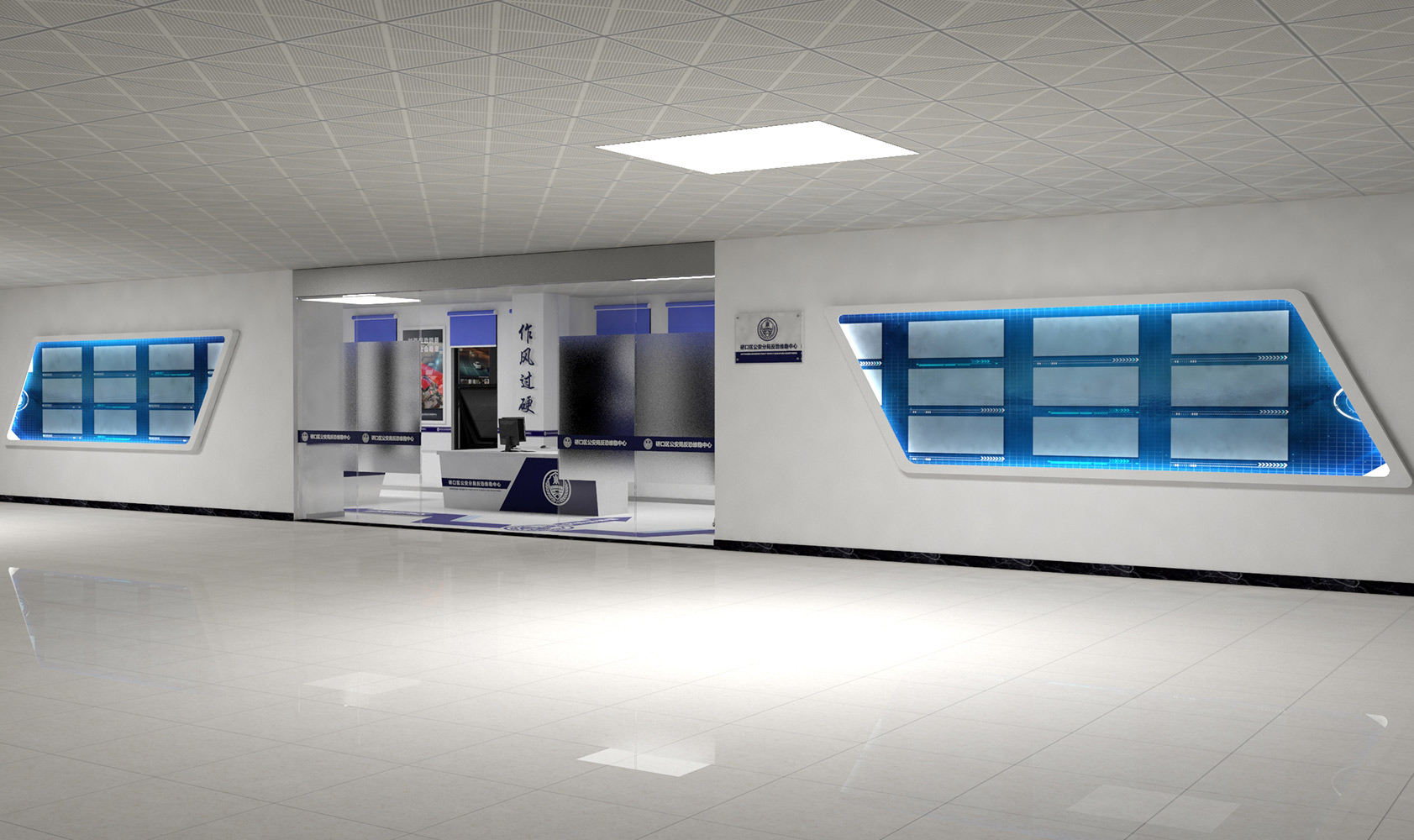 设计上采用了警蓝色作为主色调,结合空间的功能性与视觉冲击力,强化了科技感与安全感。通过合理的布局和标识系统,使得空间既具有教育性,又能提升警务人员的工作效率。
