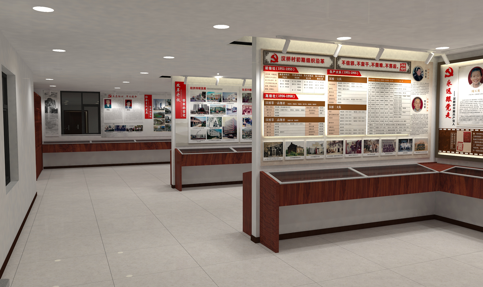 我们为汉桥中兴集团汉桥村纪念馆提供了一整套展厅设计解决方案,由于馆区前期硬件(展示柜等)已经固定,我们通过现代与传统元素的结合,在有限的墙面通过多元化设计展现了汉桥村的历史和文化底蕴。我们将精美的3D视觉设计与精准的施工图结合,确保了项目的顺利执行与完美呈现。